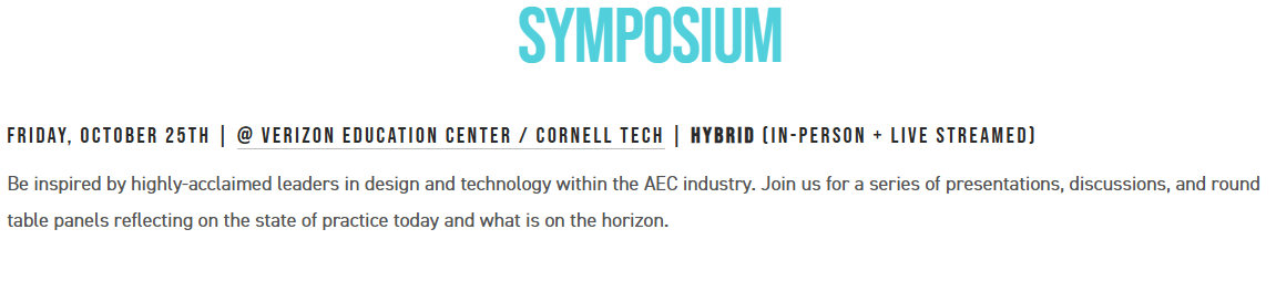I was fortunate to attend my first AEC Tech Symposium this year. The AEC Tech is an annual event focused on technology advancements in the Architecture, Engineering, and Construction (AEC) industries. Organized by the nonprofit Thornton Tomasetti CORE studio, it brings together professionals, technologists, and academics interested in digital innovation within AEC. The symposium includes workshops, presentations, and networking opportunities centered on computational design, building information modeling (BIM), digital fabrication, artificial intelligence, and other cutting-edge technologies in the field.